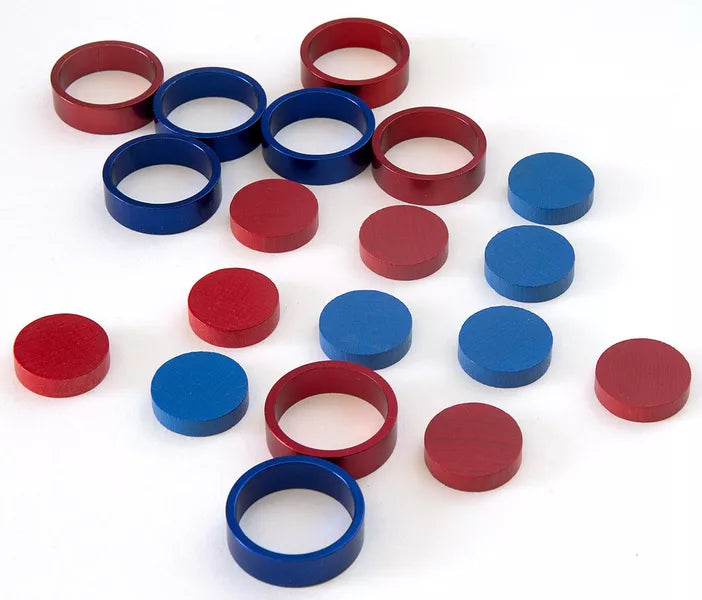 This victory condition is well known, but Ringo puts a new twist on the concept. The playing field consists of eight rings: four red and four blue. On a turn, the active player places a disc of their color in any ring, then moves the ring to a position adjacent to another ring. Whoever first creates a row of four discs or four rings in their color wins!